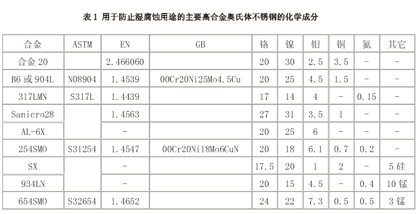 超级奥氏体不锈钢的发展